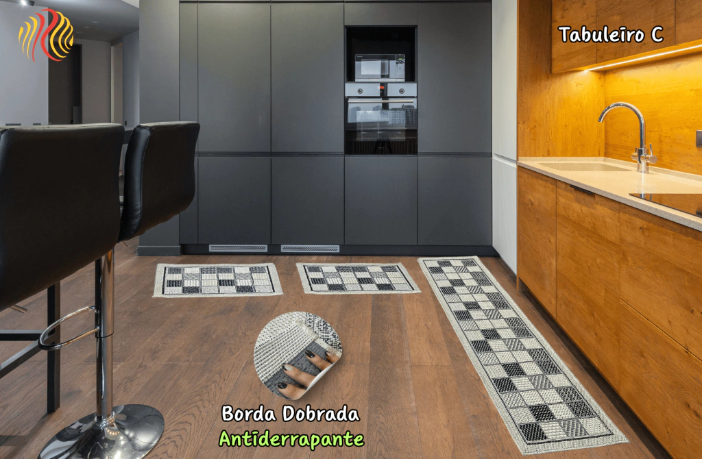 The refined finish is another highlight, with sides protected by a high-precision overlock and the innovative folded bar at the ends, which offers greater durability and more efficient fixation on the floor, preventing waves and slipping. Designed to ensure maximum safety in high circulation areas, such as the kitchen, this rug also has a non-slip base, essential to protect your family against slips and accidents.