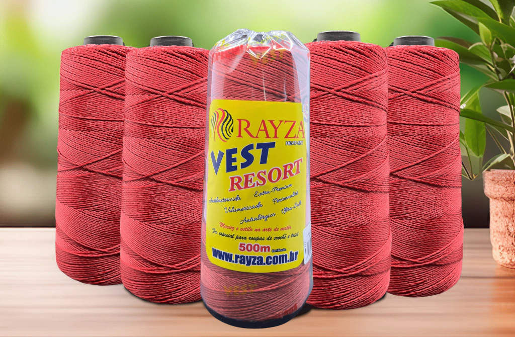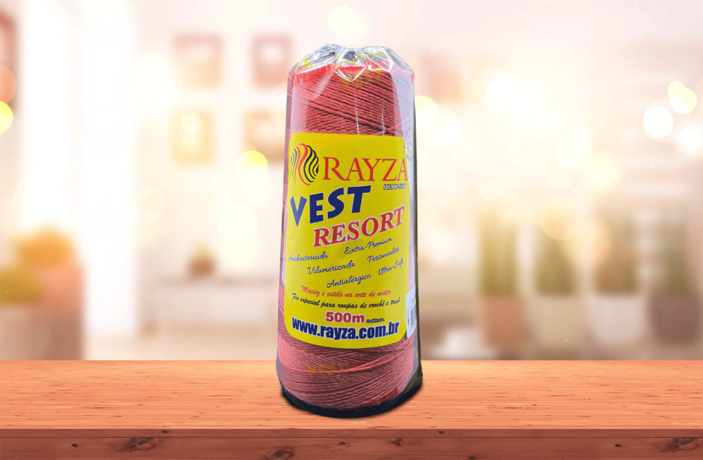 A linha RayzaVest Resort é feita com o exclusivo fio de polipropileno (PP), um material resistente, antialérgico e sustentável, perfeito para o artesanato e o vestuário. Esse fio único proporciona leveza, resistência e cores vibrantes que duram muito mais. Nossa tecnologia inovadora, que inclui processos de Heat-Set, vaporização e volumerização, traz um toque extra de maciez e conforto em cada peça, elevando a experiência para outro nível.