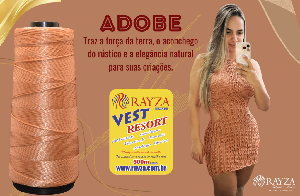 A linha RayzaVest Resort é feita com o exclusivo fio de polipropileno (PP), um material resistente, antialérgico e sustentável, perfeito para o artesanato e o vestuário. Esse fio único proporciona leveza, resistência e cores vibrantes que duram muito mais. Nossa tecnologia inovadora, que inclui processos de Heat-Set, vaporização e volumerização, traz um toque extra de maciez e conforto em cada peça, elevando a experiência para outro nível.