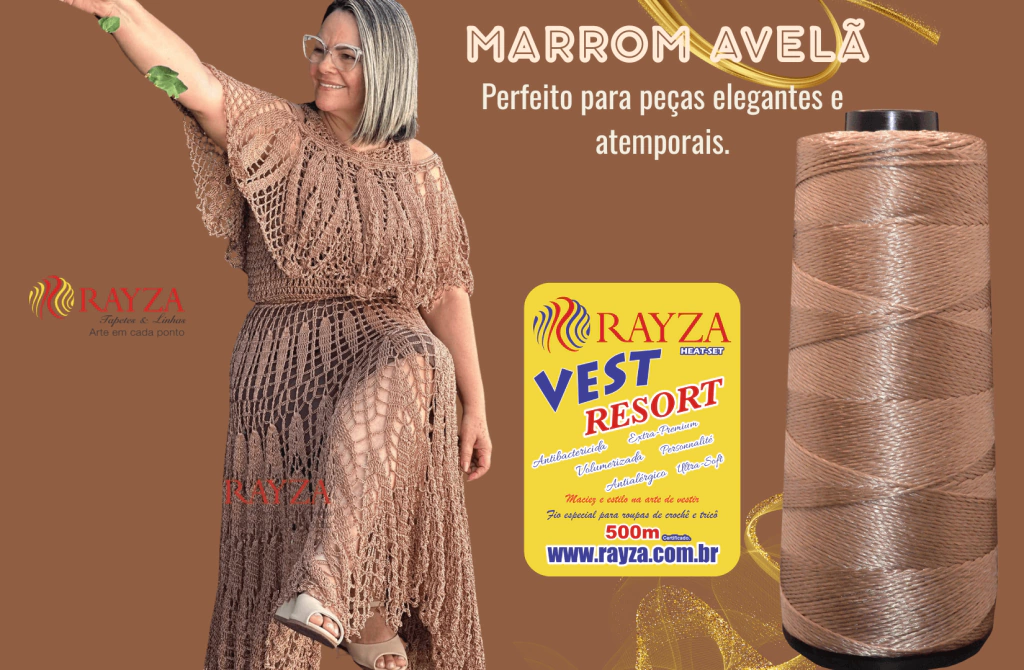 A linha RayzaVest Resort é feita com o exclusivo fio de polipropileno (PP), um material resistente, antialérgico e sustentável, perfeito para o artesanato e o vestuário. Esse fio único proporciona leveza, resistência e cores vibrantes que duram muito mais. Nossa tecnologia inovadora, que inclui processos de Heat-Set, vaporização e volumerização, traz um toque extra de maciez e conforto em cada peça, elevando a experiência para outro nível.